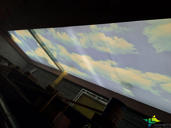 熱烈祝賀我公司濰坊慶鵬水會洗浴會所浴池藍天白云軟膜防潮吊頂順利完工,慶鵬洗浴會所軟膜防潮吊頂采用我公司精印藍天白云系列,內搭燈光,效果十分漂亮,感謝客戶對樂創品牌產品的信任與支持。 安裝效果如下圖: